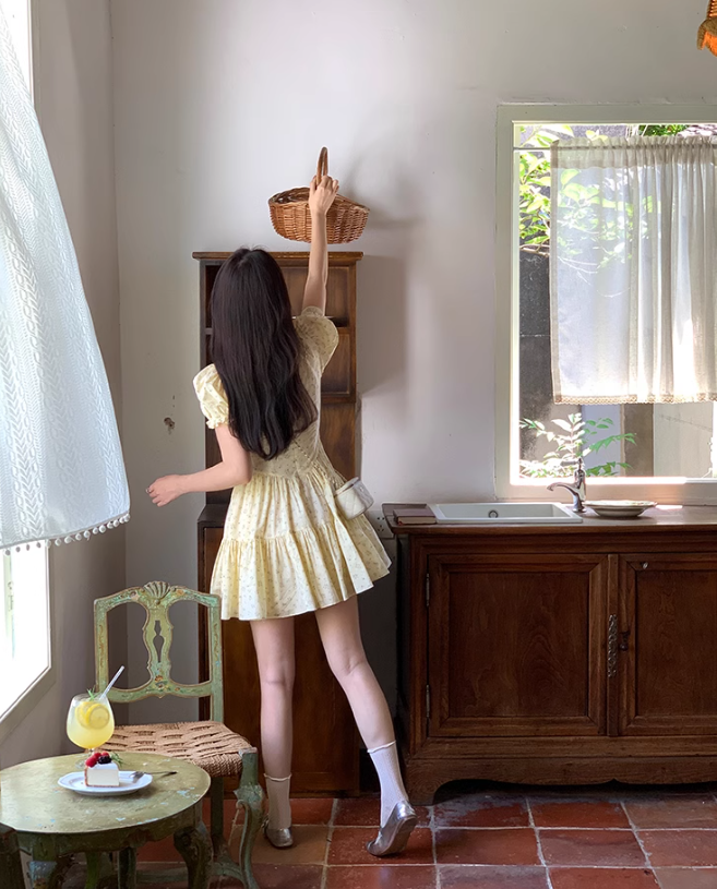 Evafashion V-neck puff sleeve floral dress HZ1024