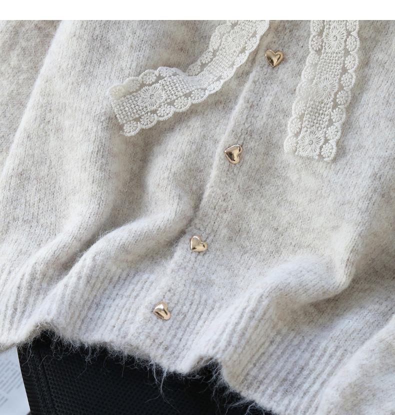 Evafashion lace lace-up thickened soft knitted cardigan HZ1024