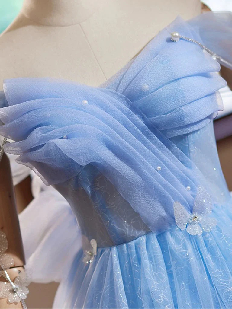 Evafashion Sweetheart Neck Off Shoulder Blue Short Prom Dress with Beads HZ1024