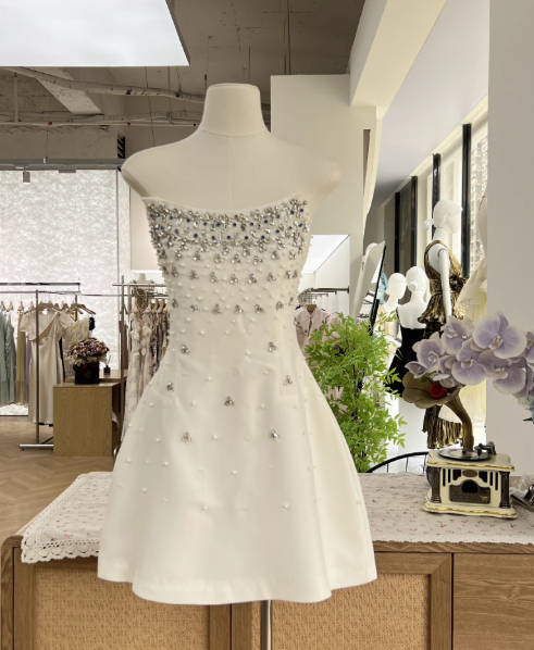 Evafashion A-Line Black Homecoming Dresses Strapless Formal Dresses Rhinestone Satin Mini Birtdhay Dresses Strapless Formal Dresses HZ1024