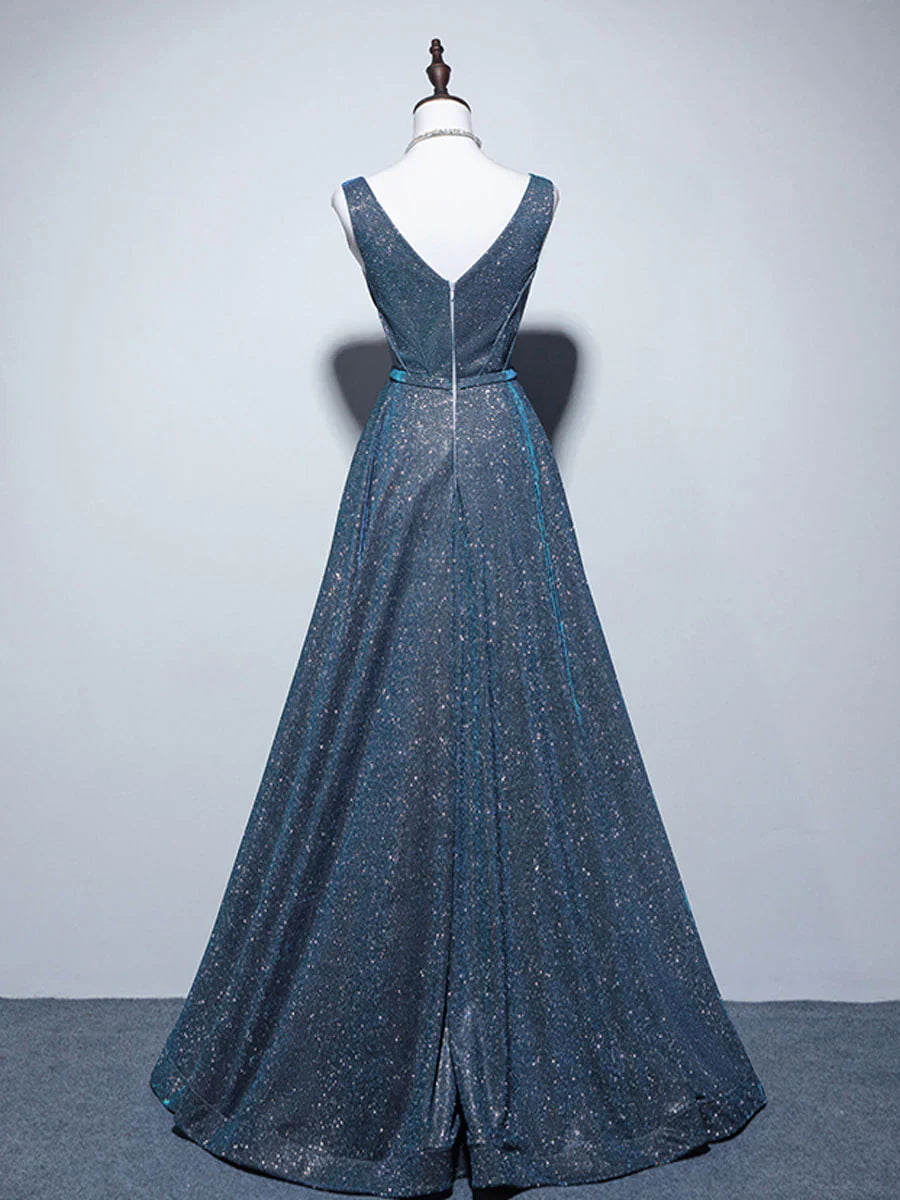 Evafashion A-Line Blue Long prom Dress, Blue Formal Dresses HZ1024