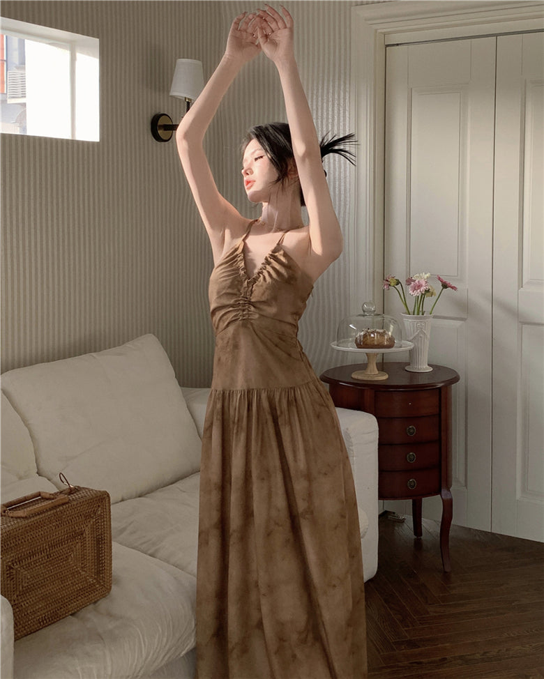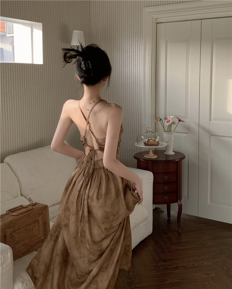 Evafashion A-line halter neck suspender V-neck backless dress HZ1024
