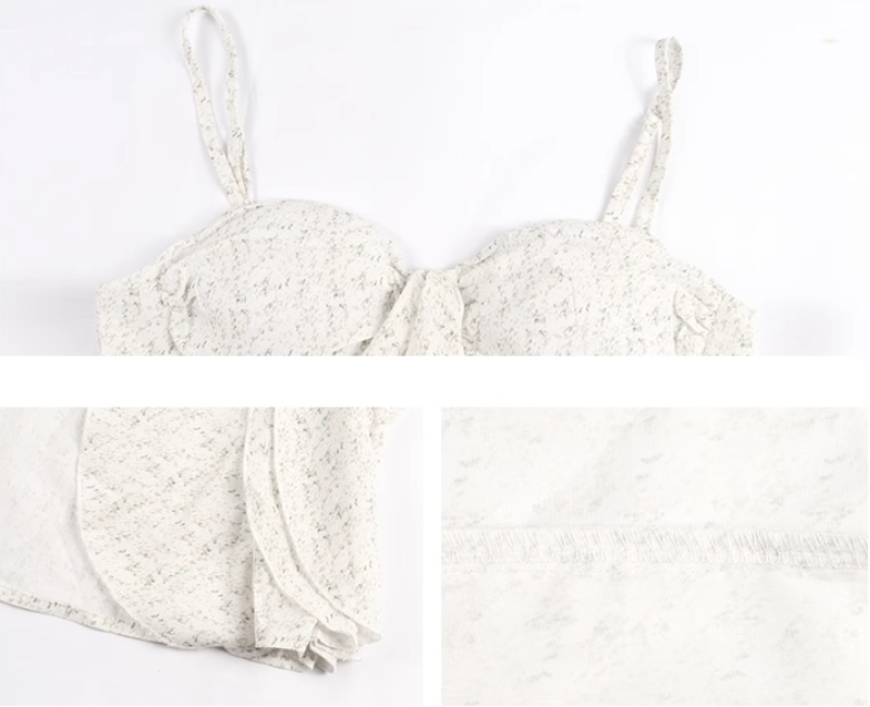 Evafashion hot girl style irregular ruffled floral suspender long skirt HZ1024