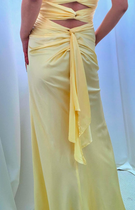 Evafashion Yellow Backless Satin Sheath Spaghetti Strap V-Neck Party Dress Prom Dress HZ1024